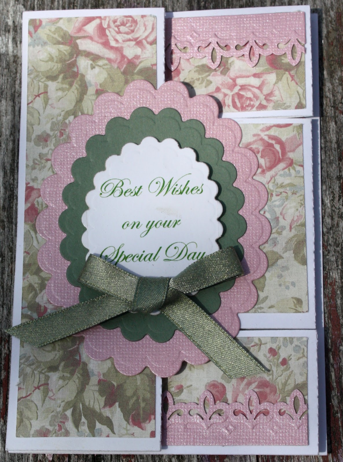This is my second trifold shutter card. I cut it out on my Pazzles Inspiration, and used Spellbinders Nestabilities to cut the die cuts with.